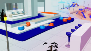 そこで新たなオフィスでは、オフィスに来た社員がその業務内容に応じた空間を選べるように設計しました。軽食を楽しみながら気軽に雑談ができるスペースや、セミナーやイベントが行えるスペース、あるいは顧客企業との面談に用いるのに十分な数の会議室やWeb接客に集中できるようなテレワークスペース、そしてオフィスにいながら独りで集中したい際に用いるデスクなど、幅広いシーンに適した環境を構築しました。