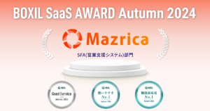 次世代型営業DXプラットフォームMazrica Sales、「BOXIL SaaS AWARD Autumn 2024」SFA(営業支援システム)部門で「Good Service」を始め、3つの賞に選出