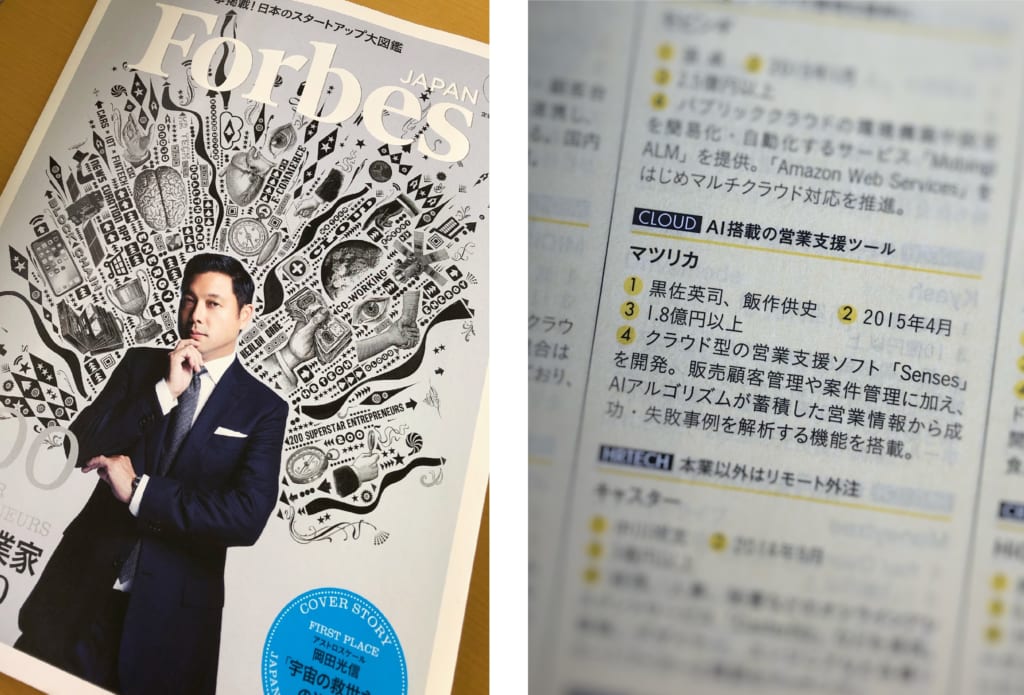 2018年11月24日発売のForbes JAPAN(1月号)の特集ページ「200社一挙掲載!日本のスタートアップ大図鑑」にてマツリカが紹介されました。
