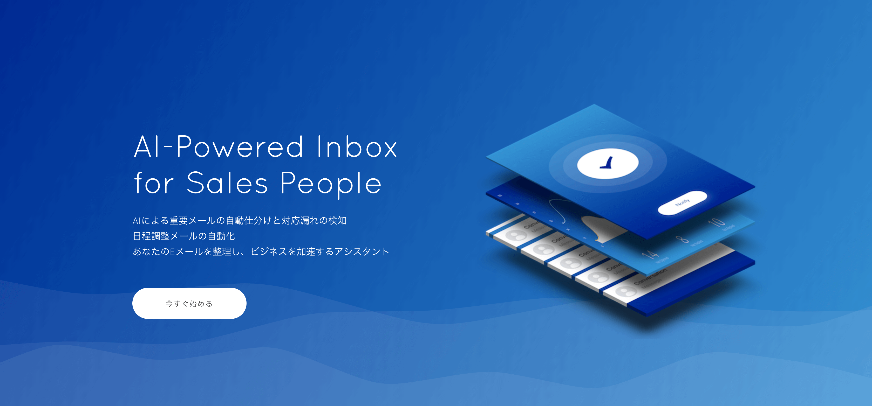 質の高い営業活動を行うため、多くの顧客に対し、最適な内容・タイミングでコミュニケーションをとることが求められてきてます。そのために”Eメール”というビジネスコミュニケーションの効率化や最適化、高速化をすることが現場の支援につながると考えています。大量のEメールの処理作業から解放され、最大限の時間をクリエイティブな営業活動や目の前の大切な顧客のために使えるように。Notiaには営業現場の支援という強い願いを込め開発を進めています。