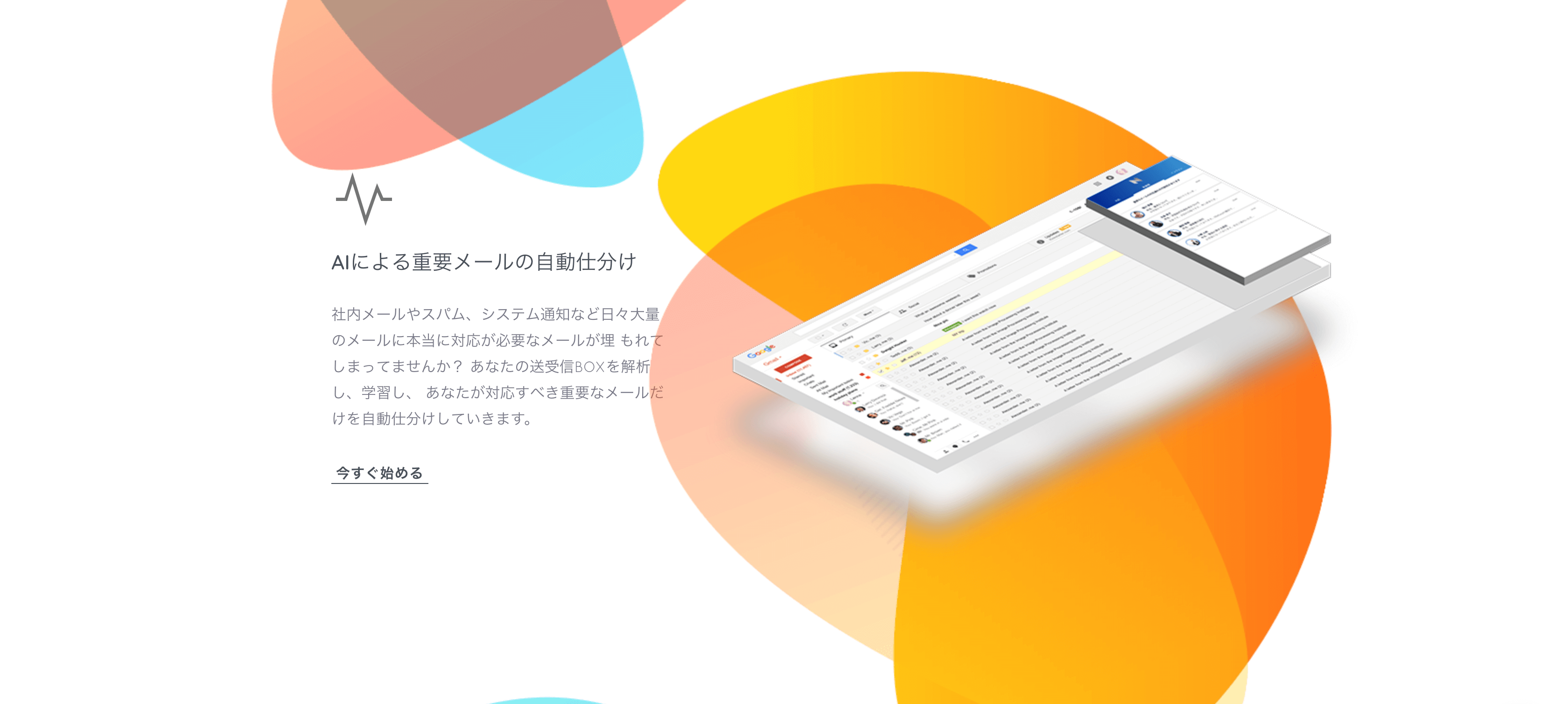 AIが送信BOXを解析することで、大量のメールの中から重要なメールだけを自動仕分け。社内メールやスパムメールなどを仕分けする作業から解放されます。