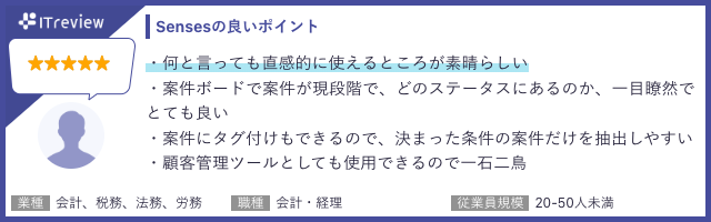 ITreviewにて、Sensesを実際に利用いただいているお客様よりたくさんのお声をいただいております。