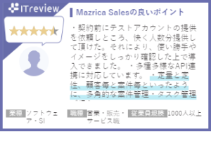 ITreviewにて、Mazrica Salesを実際に利用いただいているお客様よりたくさんのお声をいただいております。