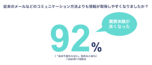 さらに買い手へのアンケートを実施し、従来のメールでの情報提供よりも情報が取得しやすくなったかという質問に対して、92%の顧客が情報を取得しやすくなったと回答頂きました。