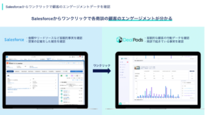 また、DealPodsでは顧客のアクセスデータからコンテンツごとに興味関心データを取得できることで、Salesforceからすぐに各商談の顧客のエンゲージメントを確認することができるようになります。