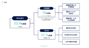 また、実際のユーザーにヒアリングを行った結果、営業活動に付帯する業務にかけていた時間の10%の工数を削減がされたことを確認しました。