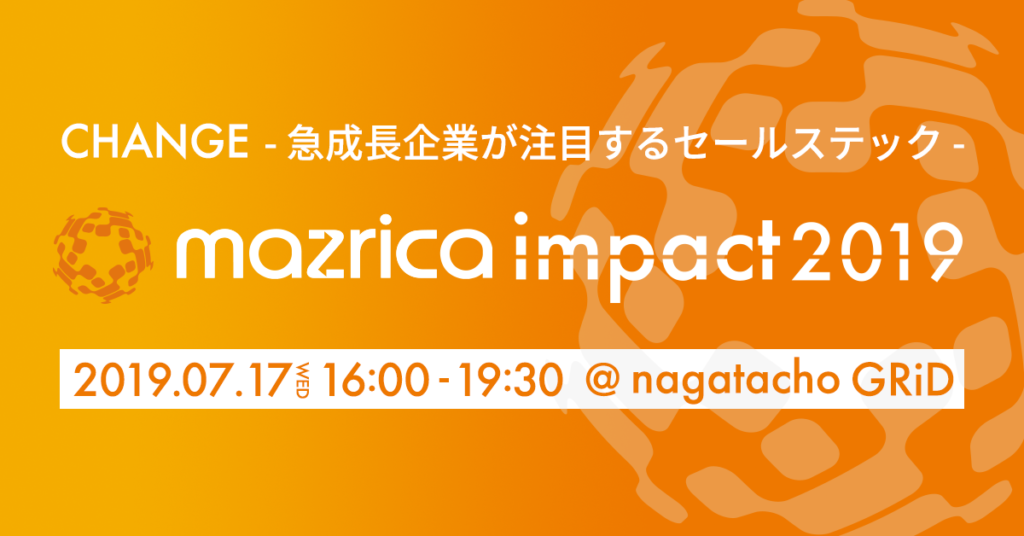 イベント名:mazrica impact 2019「CHANGE -急成長企業が注目するセールステック」