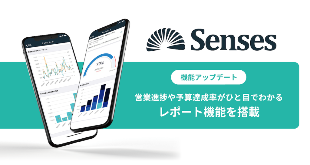 Sensesのモバイルアプリでは、Web版とほぼ同様の機能をスマートフォンからご利用いただけます。今回のアップデートでは主に「カスタムレポート機能」が追加され、日々の営業進捗や予算達成率など、営業組織の数値レポートをどこからでも手軽に確認できるようになりました。