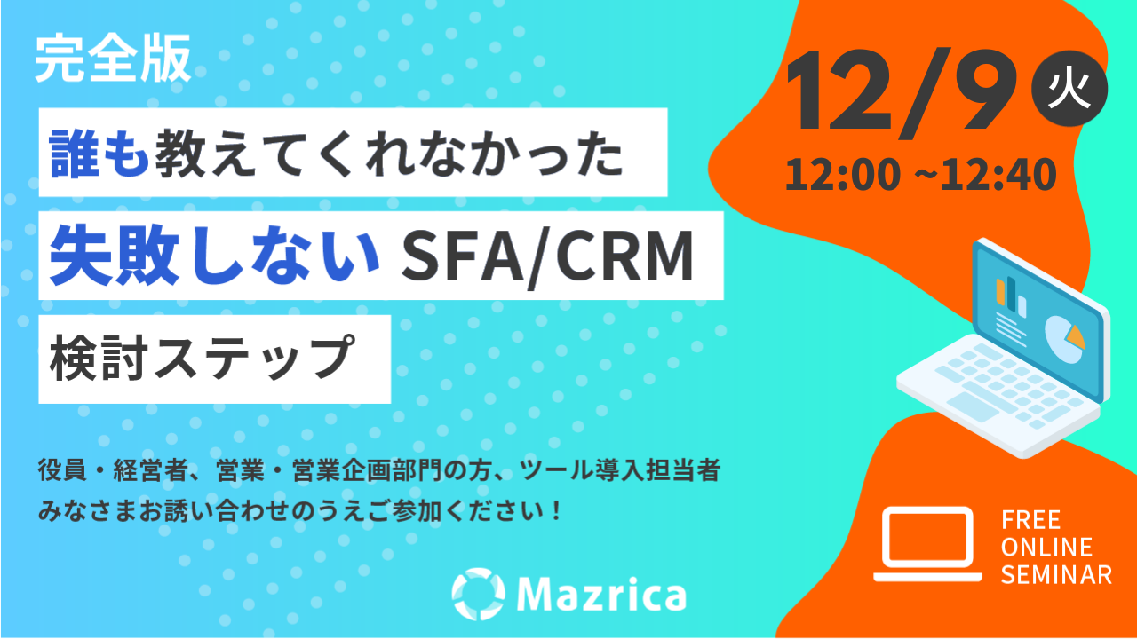 受付終了【完全版】誰も教えてくれなかった失敗しないSFA/CRM検討ステップ