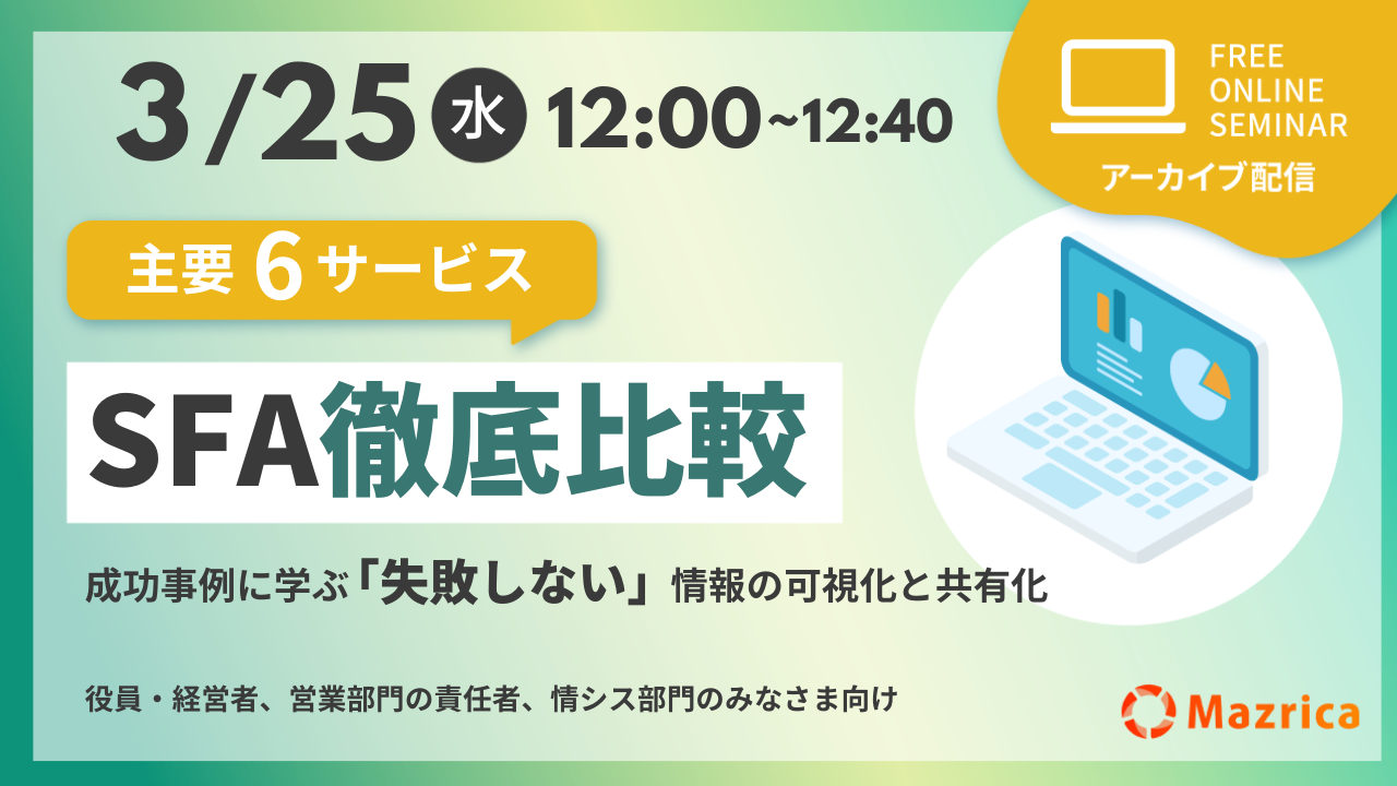 受付中SFA徹底比較 〜成功事例に学ぶ「失敗しない」情報の可視化と共有化〜