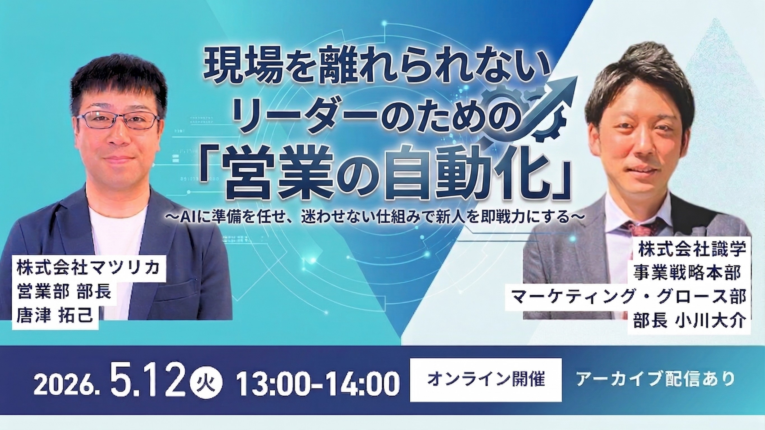 受付中現場を離れられないリーダーのための「営業の自動化」セミナー 〜AIに準備を任せ、迷わせない仕組みで新人を即戦力にする〜