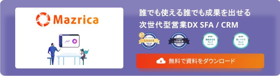 弊社が提供する「Mazrica Sales」は、「誰でも使えて、誰でも成果を出せる」をコンセプトにしたSFA/CRMで、現場での定着・活用のしやすさに定評があります。また、名前の通りSFA機能も有しているため、営業プロセス全体を支援することも可能です。