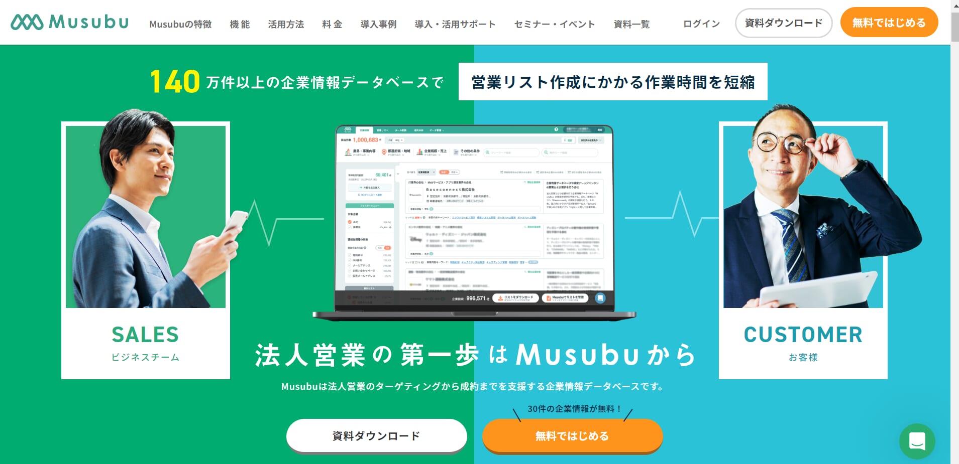 140万件以上の企業情報を保有しており、これを活用して営業リスト作成にかかる時間を短縮し、マーケティングの精度向上やアポイント獲得をサポートすることを目的としています。