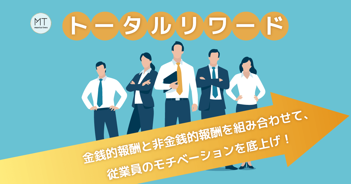 トータルリワードとは、「トータル(総合的な)」と「リワード(報酬)」を組み合わせた造語で、金銭的報酬と非金銭的報酬を総合的に勘案して決める報酬マネジメント体系です。元々は、アメリカを中心とした欧米の企業で使われた考え方で、近年日本でも注目が集まっています。報酬と聞くと、給料やボーナス(賞与)、福利厚生などが想起されますが、実は目に見えないやりがいや成長できる環境、ワークライフバランスなども間接的な報酬(動機付け)としてとらえることができます。